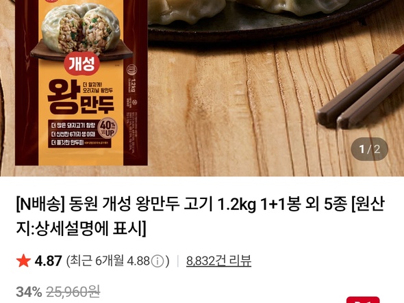 [네이버]동원 개성 왕만두 1.2kg 1+1봉 5종 무배